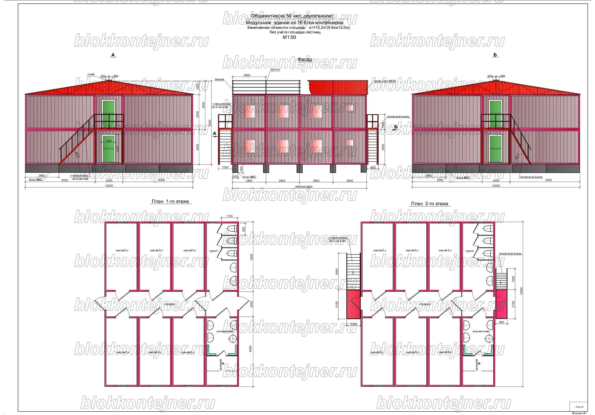 Общежитие на 50 человек, двухэтажное из 36 БК