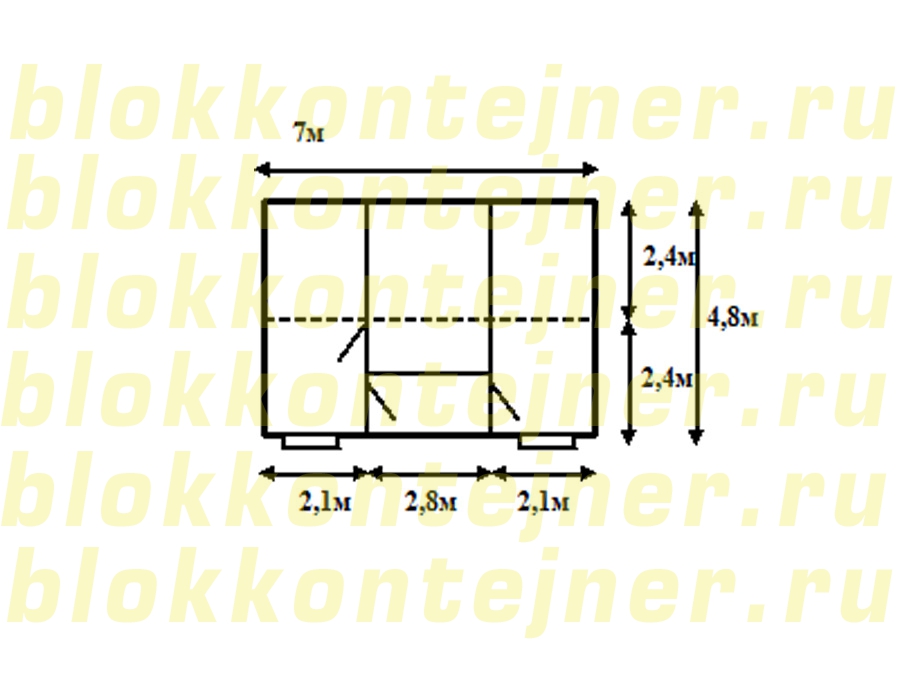 Модульное здание 7,0*4,8*2,5 м.-1шт,  состоит из 2-х  БК  7,0*2,4*2,5 м.