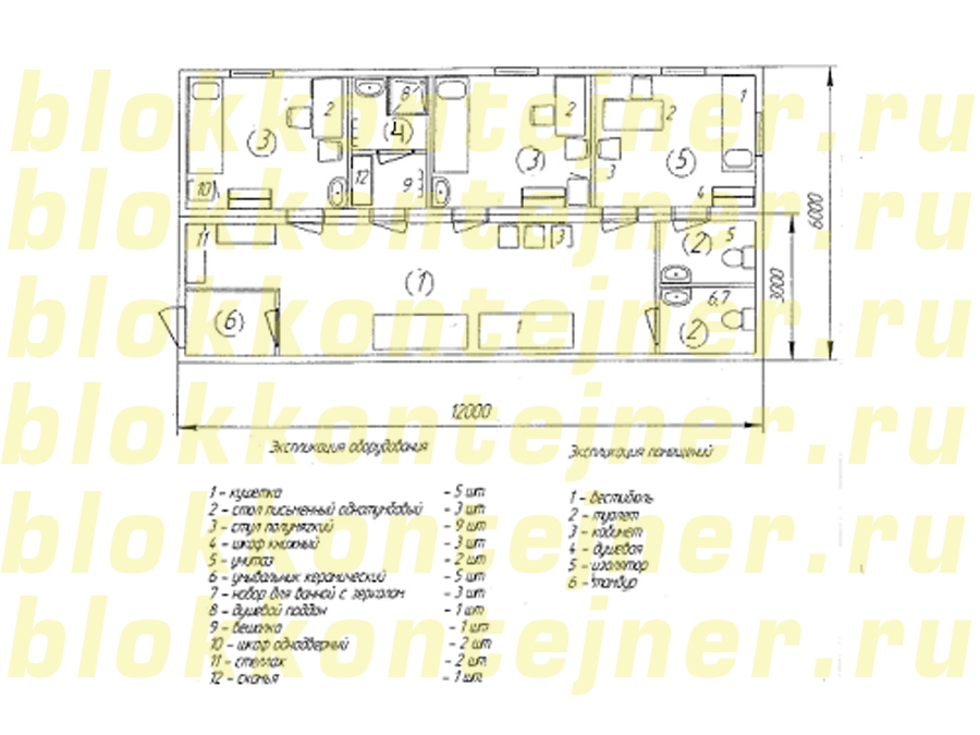Модульное здание «Медицинский пункт»   в 1-этаж, размер: (5,0 *12,0*2,5м) состоит из 2 единиц БК размер 12,0*2,5*2,5м.